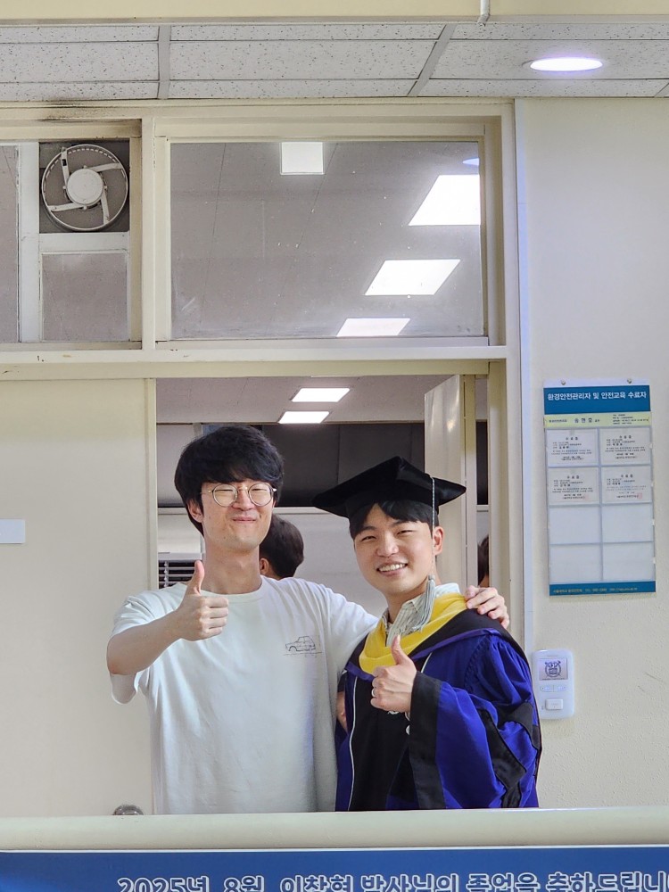 Archives Archives Notices How to Get Here Counseling Archives Home > Archives > Archives Members Archives ALUMNI 갤러리게시판 notice 1:1문의 리뷰 2025 여름 학위수여식 [8/28] Writer. 관리자Date. 2025-09-02View. 130 이창현 박사, 김민극 석사, 박륜기 석사 졸업을 축하합니다~~어디서든 건강하시소! 썸네일 캡처.PNG (대표) 목록
